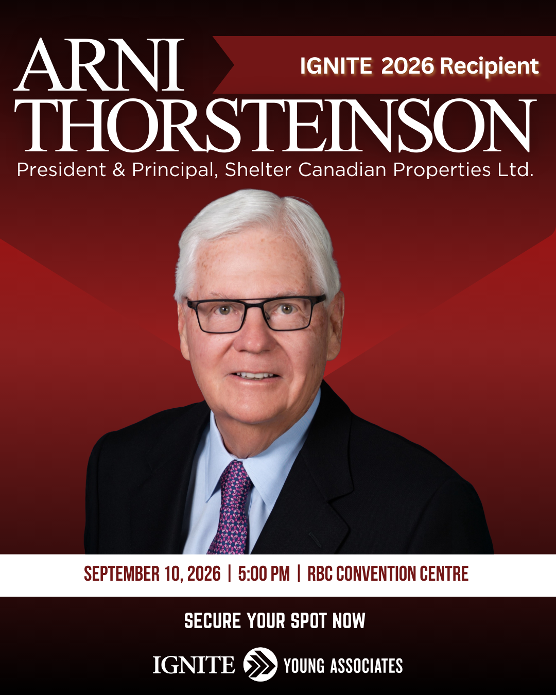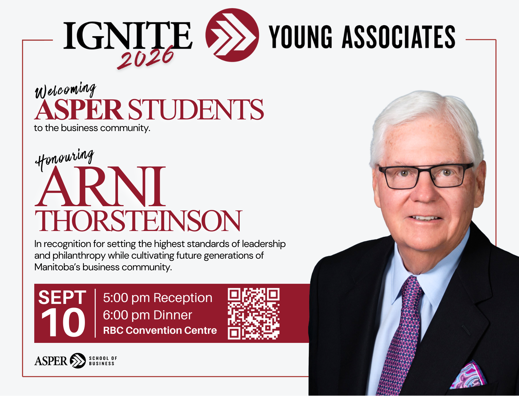 MEDIA RELEASE - DECEMBER 19, 2025 Arni Thorsteinson Announced IGNITE 2026 Recipient Winnipeg, MB – The Young Associates of the Asper School of Business are pleased to announce Arni Thorsteinson, CFA, L.L.D; Principle & President of Shelter Canadian Properties...