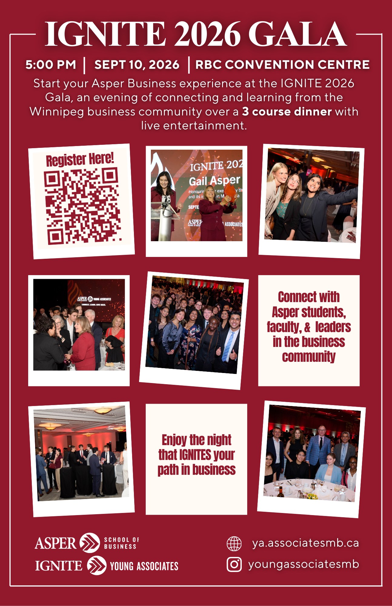 The Young Associates, the younger members of the organization that supports students and faculty at the Asper School of Business at the University of Manitoba, is launching a new event called Ignite, specifically targeted at new students. At a dinner on September 8 it...