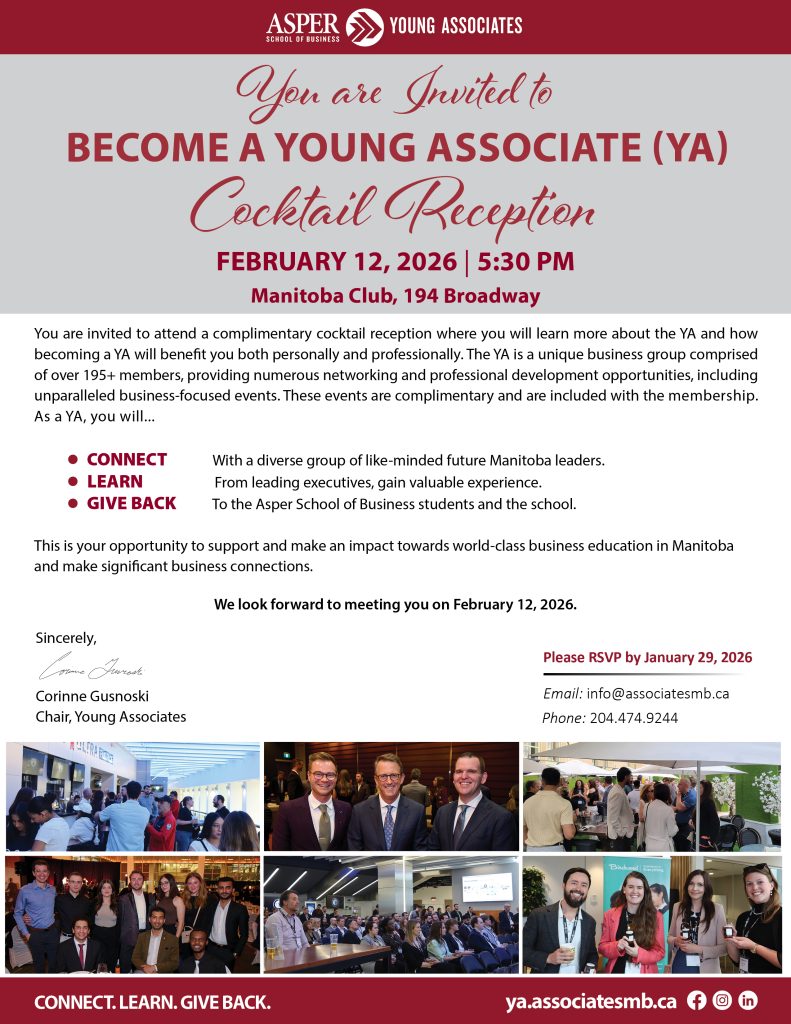 To learn more about the Young Associates membership, please contact AnnaMaria Toppazzini, CEO of the Business School Foundation by email at ceo@associatesmb.ca or by phone at 204.981.4880.